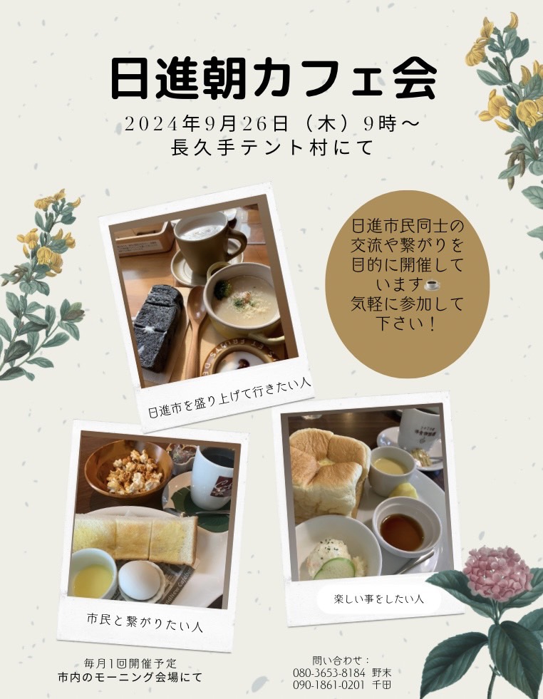 HOME > イベント > イベント 9月26日 日進朝カフェ会 2024年8月31日 9月26日(木)9時〜11時【日進朝カフェ会☕️】 毎月開催!モーニングを食べながらの交流会!会費無し!地元の方々と繋がるチャンスです。 今回の場所は「長久手テント村」になります! イベント参加ご希望の方はこちらからご連絡ください Post Share Pocket Hatena Pinterest LINE URLコピー -イベント