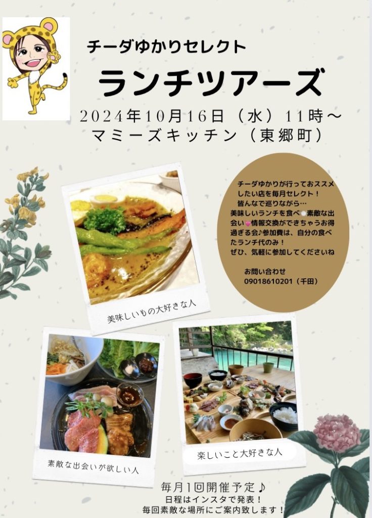 HOME > イベント > イベント 10月16日 ランチツアーズ 2024年9月11日 2024年10月16日(水)11時〜 マミーズキッチン(東郷町)にて美味しいランチをいただきながら楽しいおしゃべりと素敵な出会いや情報交換ができちゃうお得な会です。 参加費は無料でランチ代のみです。 参加申し込みは千田まで! イベント参加ご希望の方はこちらからご連絡ください Post Share Pocket Hatena Pinterest LINE URLコピー -イベント