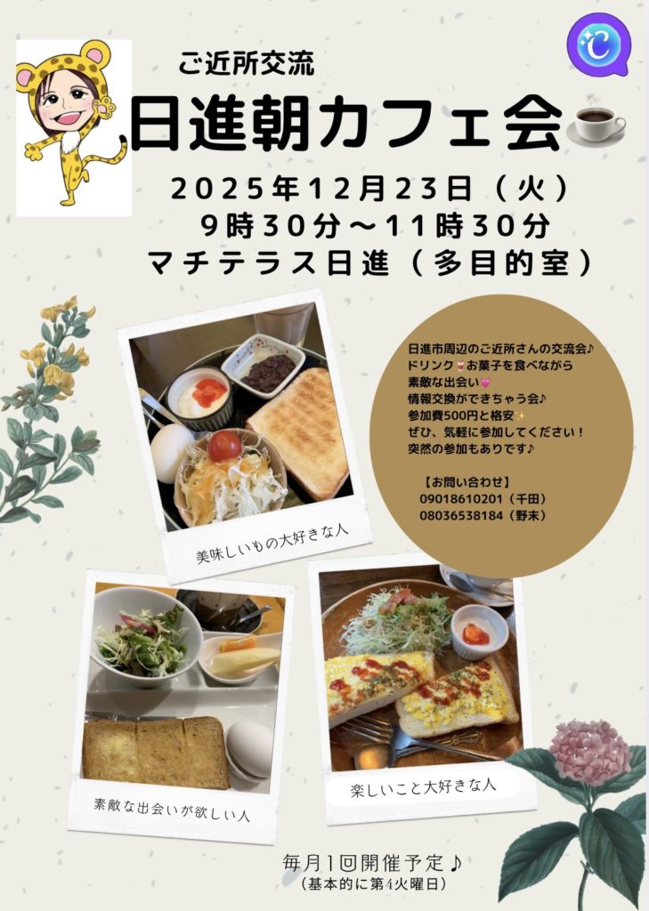 HOME > イベント > イベント 12月23日 日進朝カフェ会 2025年12月3日 【日進朝カフェ会☕️】毎月開催のご近所交流会!日進市在住じゃなくても大丈夫👌ぜひ、気軽にご参加ください♪ イベント参加ご希望の方はこちらからご連絡ください Post Share Pocket Hatena Pinterest LINE URLコピー -イベント